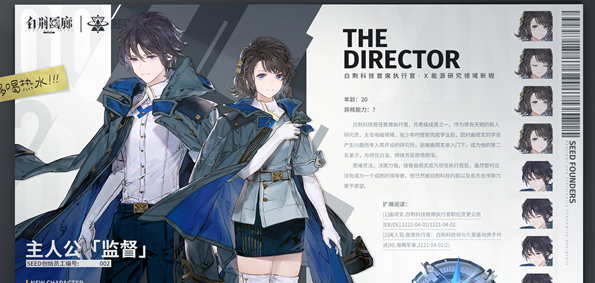 主人公「监督」——现任白荆科技首席执行官,能源研究领域的新锐专家,玩家将通过其视角主导剧情推进与战术决策。