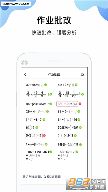 作业批改:数学作业轻轻一拍,一秒钟帮你找出错题,支持批改中小学全年级数学作业。