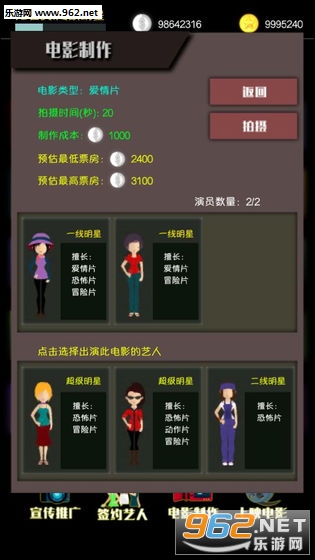 3.玩家还可以选择自己喜欢的演员前来参演电影,合适的演员能够让电影更完美;