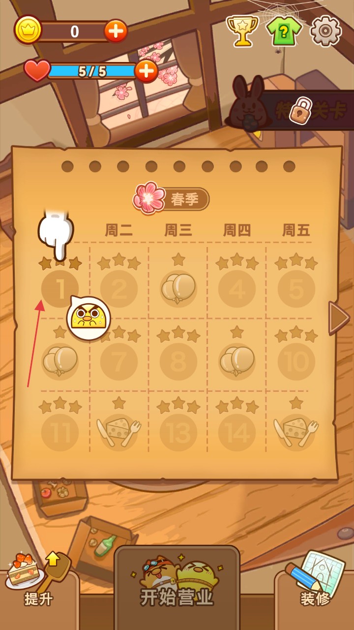 进入游戏后,点击【开始营业】即可开启你的餐厅日常。通过营业日程表选择当天日期,做好开店准备,迎接络绎不绝的顾客。