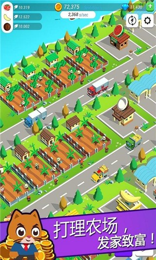 超级闲置猫这款模拟经营游戏采用了十分卡通的设计,玩家们将会带领自己的喵军团们一起经营农场,精致的3D模型和丰富的色彩设计将整个游戏的画面变得非常亮眼。里面的农产品种类也会根据我们的农场规模变得越来越多,在商店中还有许多有趣的道具能够帮助我们获得更多的收益。