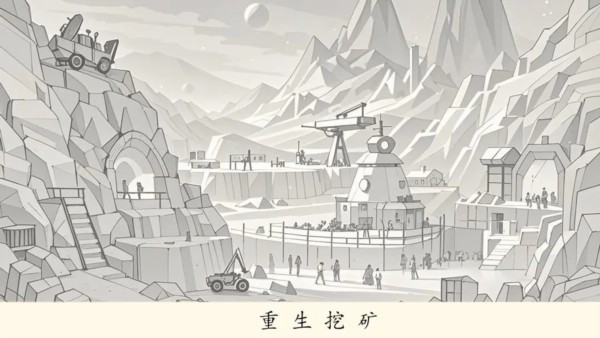 通过挖矿获取资源,投入科技研究,解锁新科技,解锁更高级的设施和工具,推动矿场不断发展。
