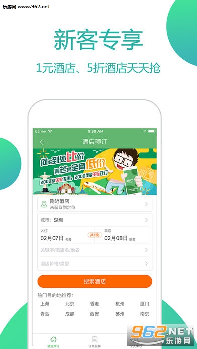 为旅行爱好者和经常出差人群打造的酒店预订平台,各种旅店应有尽有,绝对可以满足你的需求,而且还有八折促销、1元酒店等专享活动,让你享受更加优质的服务体验!
