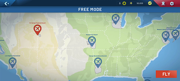 4. 在世界地图上选定出发与目的地,点击Fly”确认航线。