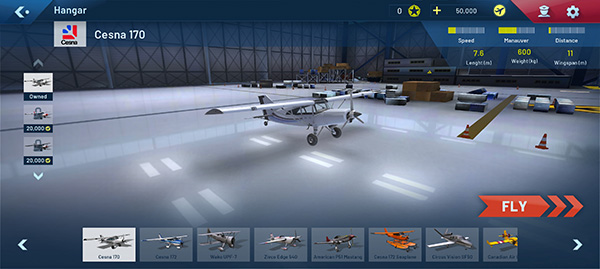5. 从已解锁的机队中挑选心仪飞机,准备起飞。