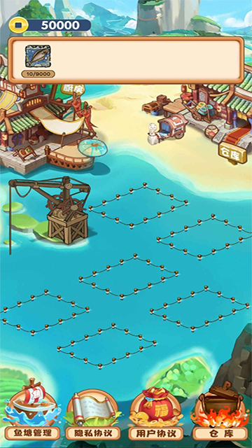 1、游戏开始后,玩家将看到六个空闲的鱼塘等待经营。