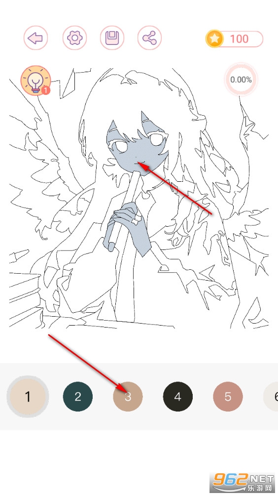 游戏操作极简,无需绘画基础也能快速上手。只需三步:首先在丰富分类中挑选心仪画作;进入画面后,点击下方颜料盘选择颜色;系统会智能高亮可涂区域,点击即可完成上色。过程中若遇困惑,还可点击左侧灯泡图标获取提示,助你轻松完成作品。完成后一键保存,随时分享你的艺术成果。