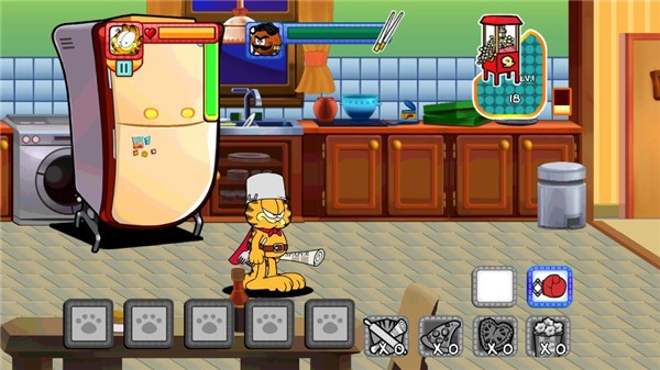 1、您要控制加菲猫,他的储藏库有着各种各样的武器;