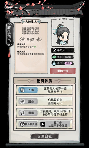 6、九重天每转生一次都选择红色心法开局,名字可以重新建立,词条每次都需要【自动化修仙】。