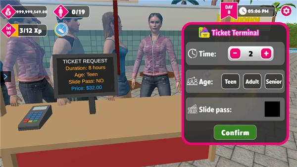 3、雇佣员工并保持清洁!您需要一支强大的团队来管理从泳池游戏到公园升级的一切事务。清理杂物,让游客们满意,并发展您的帝国。