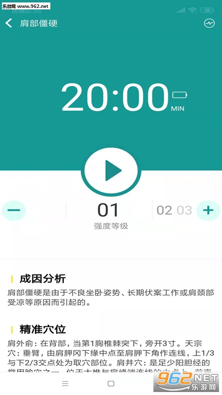 在理疗模块,我们设置了多种专业按摩方案,用户可以根据实际症状选择对应的按摩方案。在享受按摩的同时还能查看症状成因及表现、相关穴位的定位说明等信息。