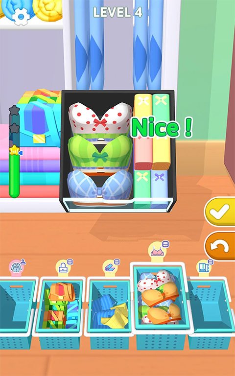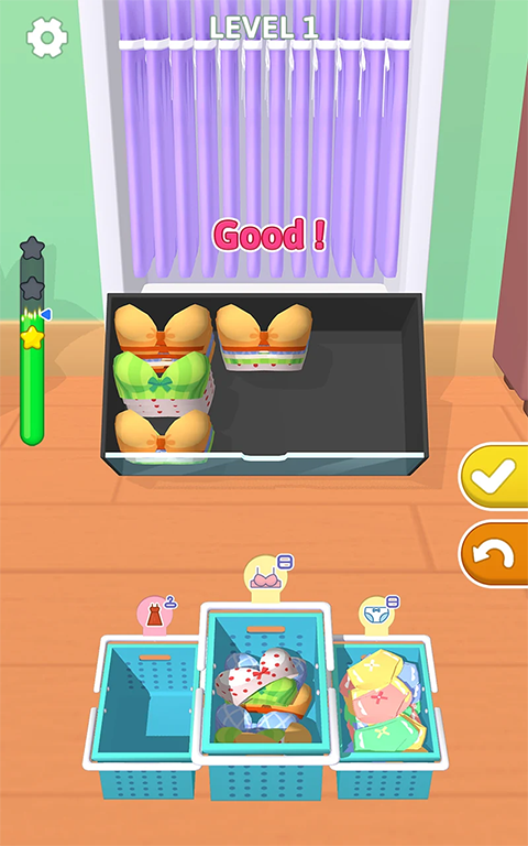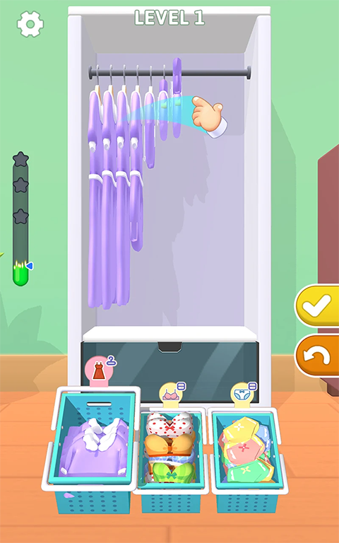 3、卡通的游戏画面,丰富的挑战的游戏玩法,进行衣柜的整理
