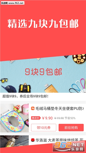 4、精选九块九包邮:每天精选超值9块9包邮商品,9块9包邮,全国轻松买。