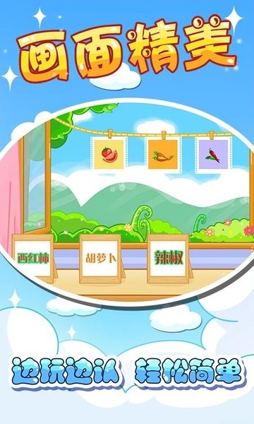 3、认蔬果,通过生动的场景,认识几十种常见蔬果。