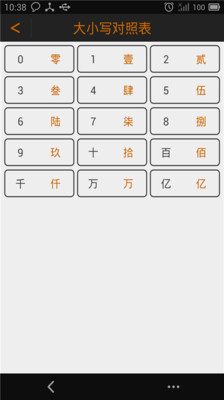 总体来说是一款非常实用的软件app,可以直接将小写的数字转成大写,用在发票填写的时候非常的好用,怕自己写错了大写的数字的亲们可以试下这个软件。