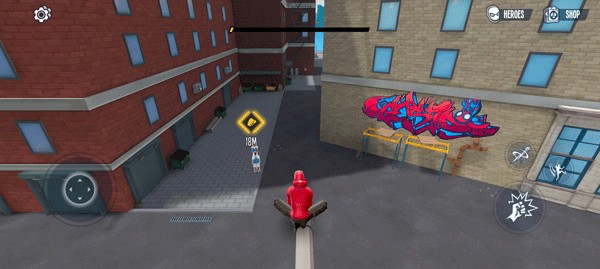 4、游戏采用横版操纵,屏幕左边控制移动,右边则为攻击、发射蜘蛛丝、跳跃等键位。