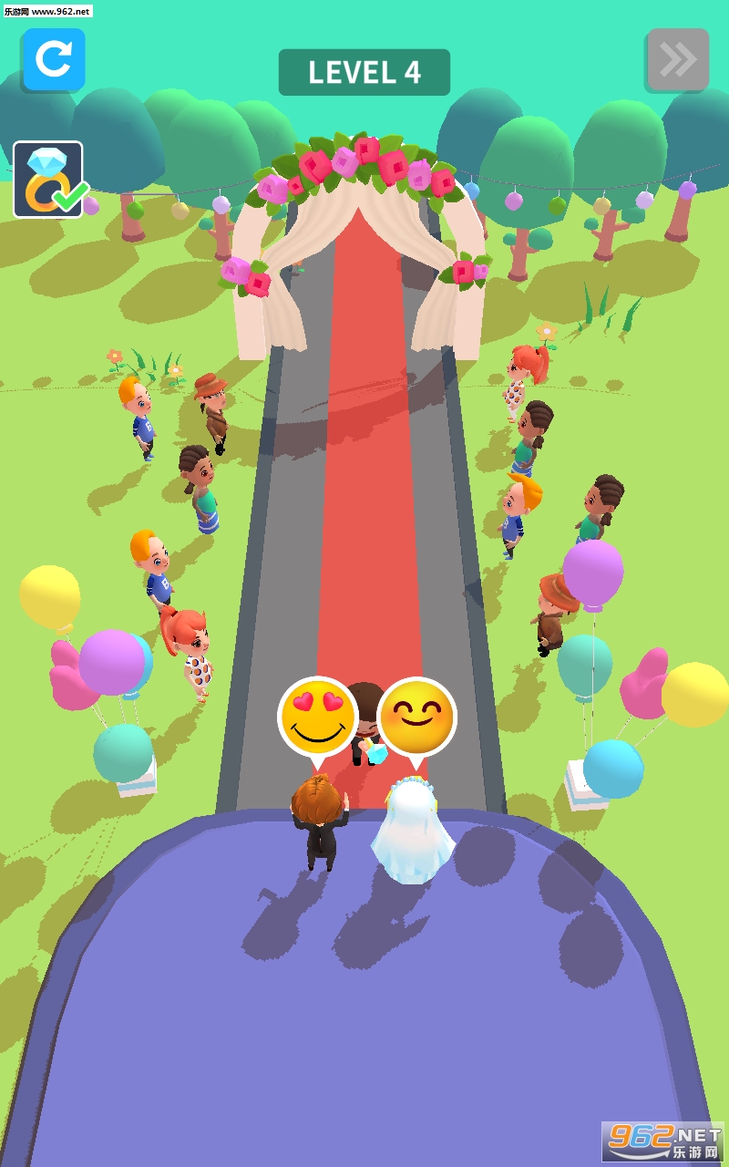 总体来说是一款玩起来十分有趣的益智休闲闯关类游戏,可爱的3DQ版卡通的画风以及轻松简单的点击操作玩法让游戏变得还是很有趣的,在各种不同的场景中,帮助这对新人完成婚礼即可,有各种风格的解谜特色,喜欢的亲们赶紧下载吧。