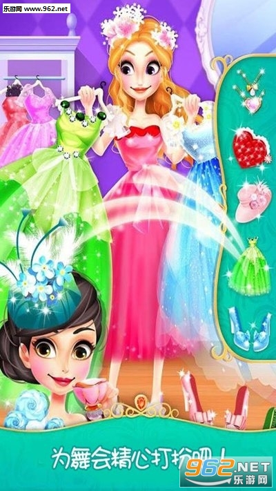 一款公主舞会游戏软件。现在让我们展示一下芭蕾舞蹈演员的美。这位演员正等着你帮她选择完美的礼服和妆容,这是你的工作,奇妙公主舞会设计,一定要确保他们穿着整齐,准备上场。快点,他们不能迟到!
