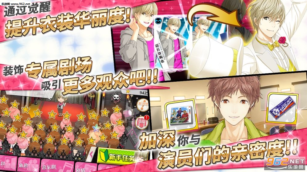 《梦色卡司》是一款二次元卡通风格的乙女向音乐恋爱游戏,游戏中玩家将扮演一种稀有职业——剧作家,在剧团解散后,加入了梦色剧团,游戏中玩家将挑战各种各样有趣的映月游戏,来积累经验值,不断的解锁培养不同主角的好感度,解锁更多的服装和剧情,还在等什么呢?赶快赶快下载体验吧!
