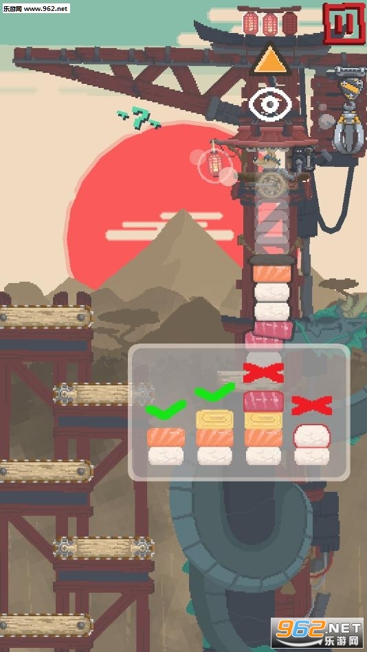 2、到达高处的时候,风会比较大,如果玩家搭建的寿司塔不够稳固,就会被吹的歪下去。