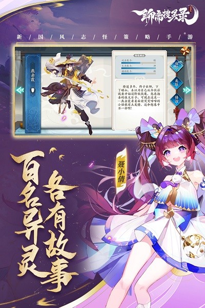 2026新国风志怪策略手游,大世界自由探索,推主线波云诡谲; 邂逅百位聊斋异灵,每一位皆有故事,每一位皆值得培养; 羁绊组阵策略搭配,8×8战场7vs7对决,品奇遇众生情仇,闯神州拯救乱世。 丰富套路演绎战斗乐趣。 国韵新风,志怪奇说,2026新国风志怪策略手游《聊斋搜灵录》,邀您共闯异世神州!