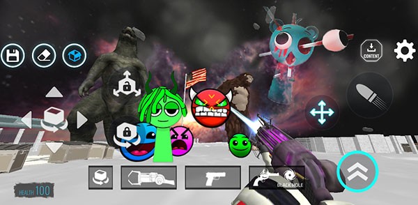 太空沙盒模拟器英文名叫Sandbox In Space,游戏的故事背景设定在太空之中,玩家们可以在这里看到很多热门游戏元素,类似节奏盒子中的小人,马桶人,侏罗纪恐龙,玩家们可以自由选择不同角色的形象并加以改造,而且完全不用担心其他的规则限制,让你可以自由发挥自己的创意打造自己的沙盒世界。