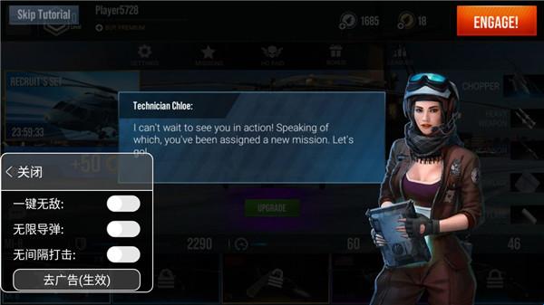 6、完成任务后即可返回机库购买直升机的升级部件以及设置语言