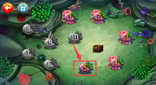 1、进入游戏选择关卡点击红色框框里的5关卡。