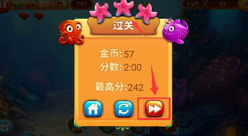 3、恭喜你3星通关,点击红色框框里的下一个继续。