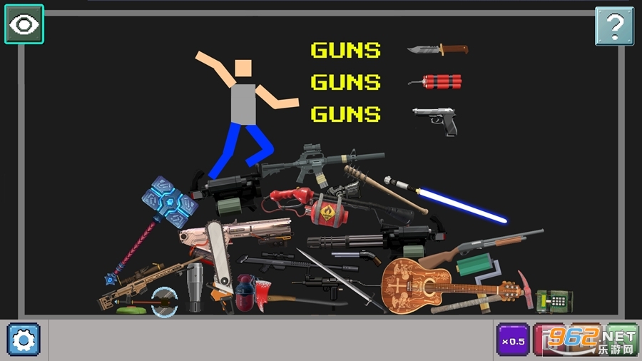 《毁坏游乐场游戏》(People Mutilate Playground)是一款简单像素风格的自由模拟类休闲手游,与甜瓜游乐场玩法类似,让你在各种场景中尽情释放破坏欲望。在这个游戏中,你可以解锁各种人物、武器和道具,体验各种不同的破坏场景,享受破坏的快感。