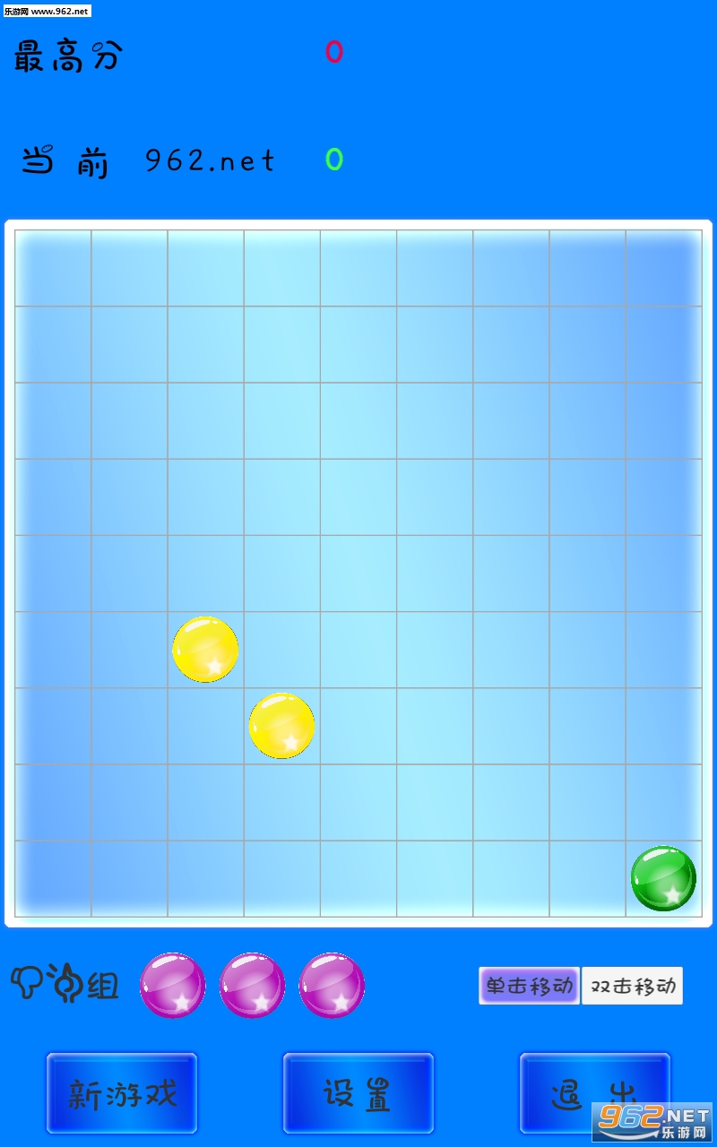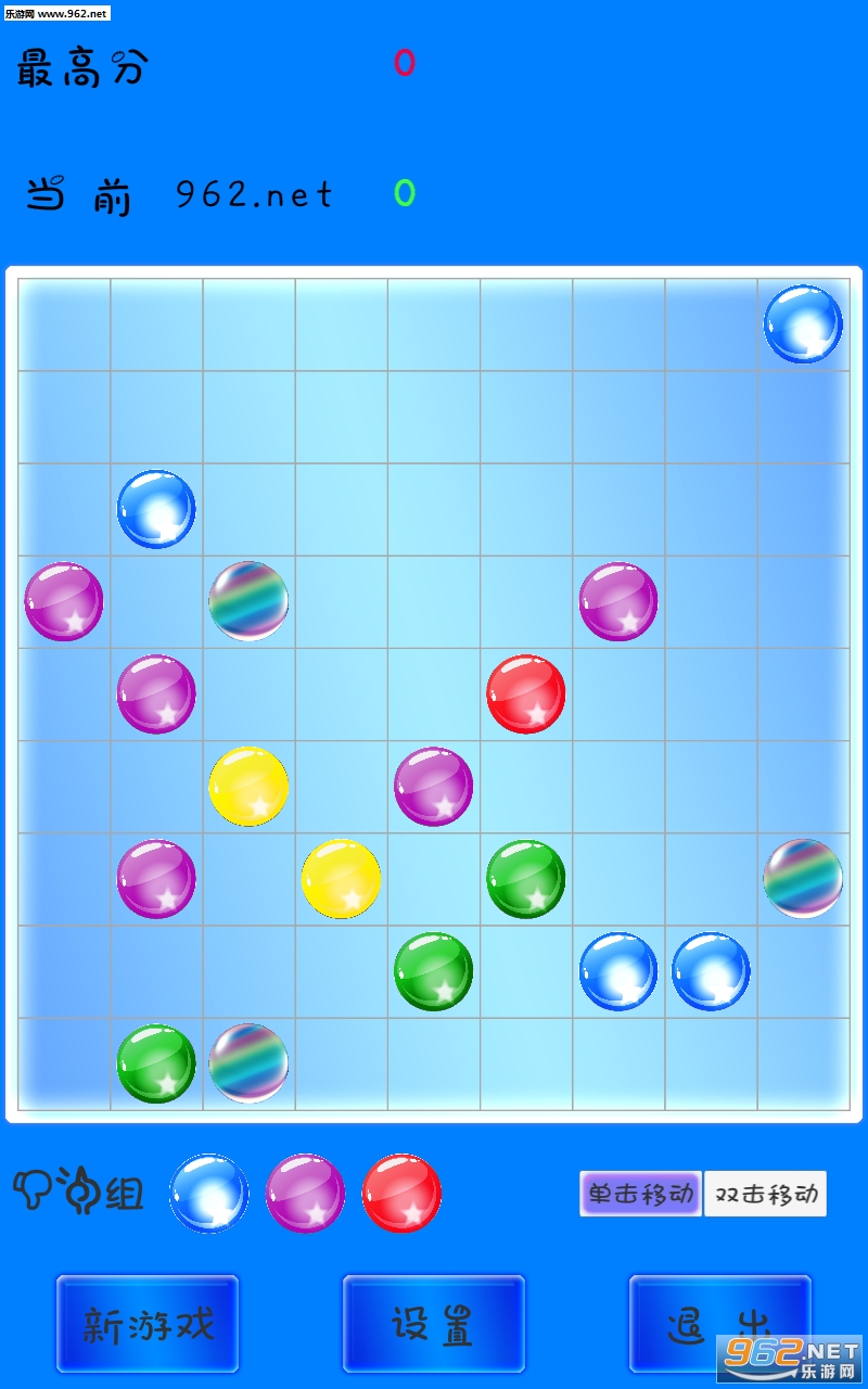 1、游戏在 9 x 9 的棋盘内,将5个或以上相同颜色的彩球连成直线,横、竖、对角均可,则彩球消失并得分,每次连成线的彩球越多,得分越多