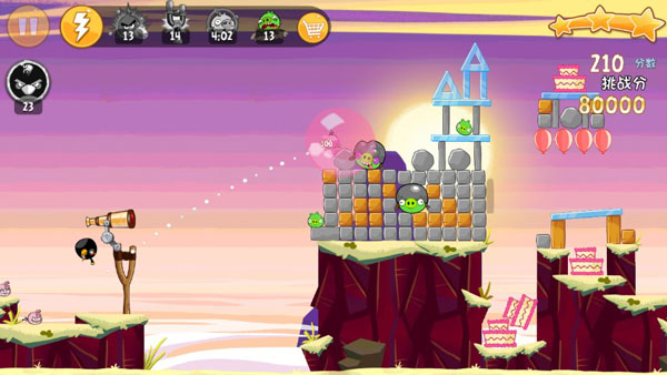 每个主题下的关卡背景也有差异,通过拉拽弹弓,调整弹射弧度来击落前方猪猪”目标。