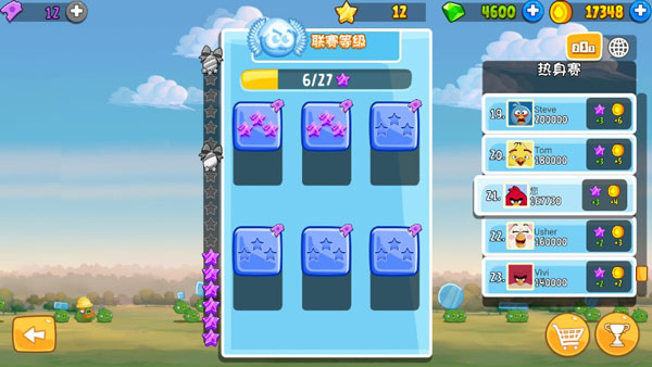 9、升级小鸟:可使用羽毛提升小鸟等级,提高小鸟得分能力。打造终极鸟群。