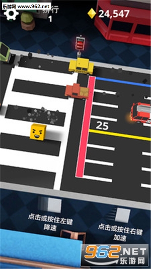 玩法非常简单,控制立方体的速度,小心躲避汽车的撞击,成功到达马路的对面。