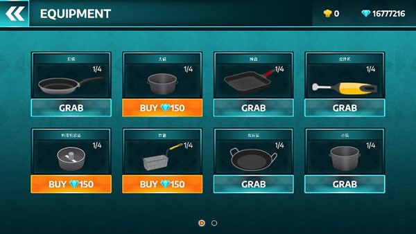 2. 进入主界面后,你会惊喜地发现初始即赠送大量钻石,可用于购买厨具或升级设备。