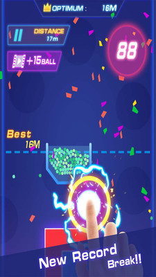 触摸屏幕消除方块,让容器下落,不要让小球溢出来,下落越多分数越高,看你在丢掉所有的求之前能走多远,去不断刷新你的纪录吧!