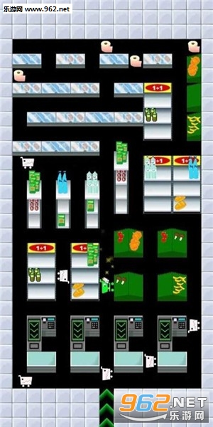 有点类似于吃豆子的玩法,你要操控一辆购物车在超市中开始扫荡。