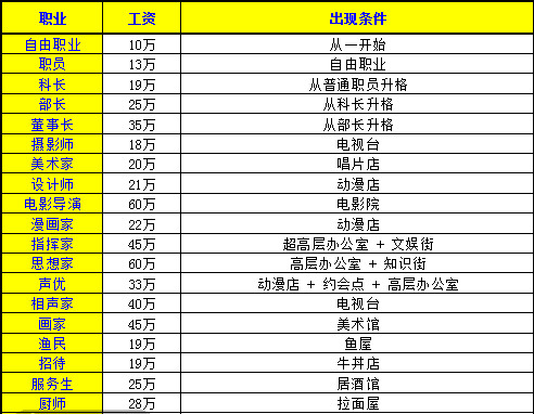 职业需要由办公室来发现,有居民在该办公室工作,随机发现周边产业建筑对应的职业。一些特定职业需要高级办公室或者超高层办公楼来发现。不同级别的办公室的影响范围不同,如果职业需要多个产业建筑,要发现该职业必须要使所有涉及的产业建筑都在该办公室的影响范围内才可以。如果职业的发现条件需要某专业街,那么需要在影响范围内至少具有一格构成该专业街的建筑。