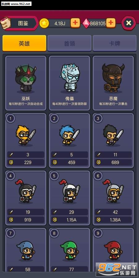 2、合并2位英雄以获得强大的英雄。