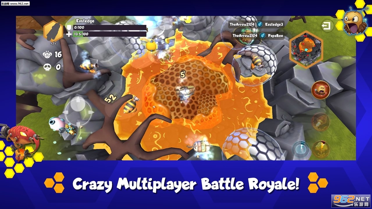 《蜜蜂大逃杀》是一款清新卡通风格的蜜蜂飞艇大逃杀游戏,游戏中玩家将加入20人的战场中成为最后的幸存者,游戏的操作简单容易上手,驾驶你的飞艇和对手进行战斗,灵活的走位和使用武器能够让你用更少的血量来击败敌人,游戏的操作简单容易上手,赶快下载体验吧!