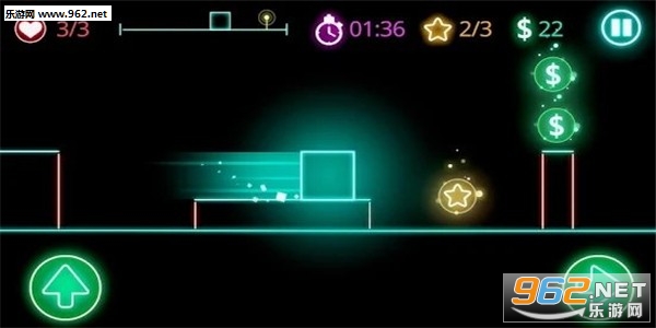 发光障碍道发光障碍道是一款霓虹色彩方块闯关游戏,游戏背景简约,色彩偏黑暗,但是有着十分光彩夺目的耀眼光彩,玩家需要操控方块进行闯关。