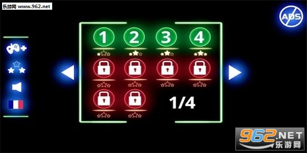一款玩起来非常轻松休闲的方块闯关的游戏,漆黑背景下透着霓虹灯的光芒。