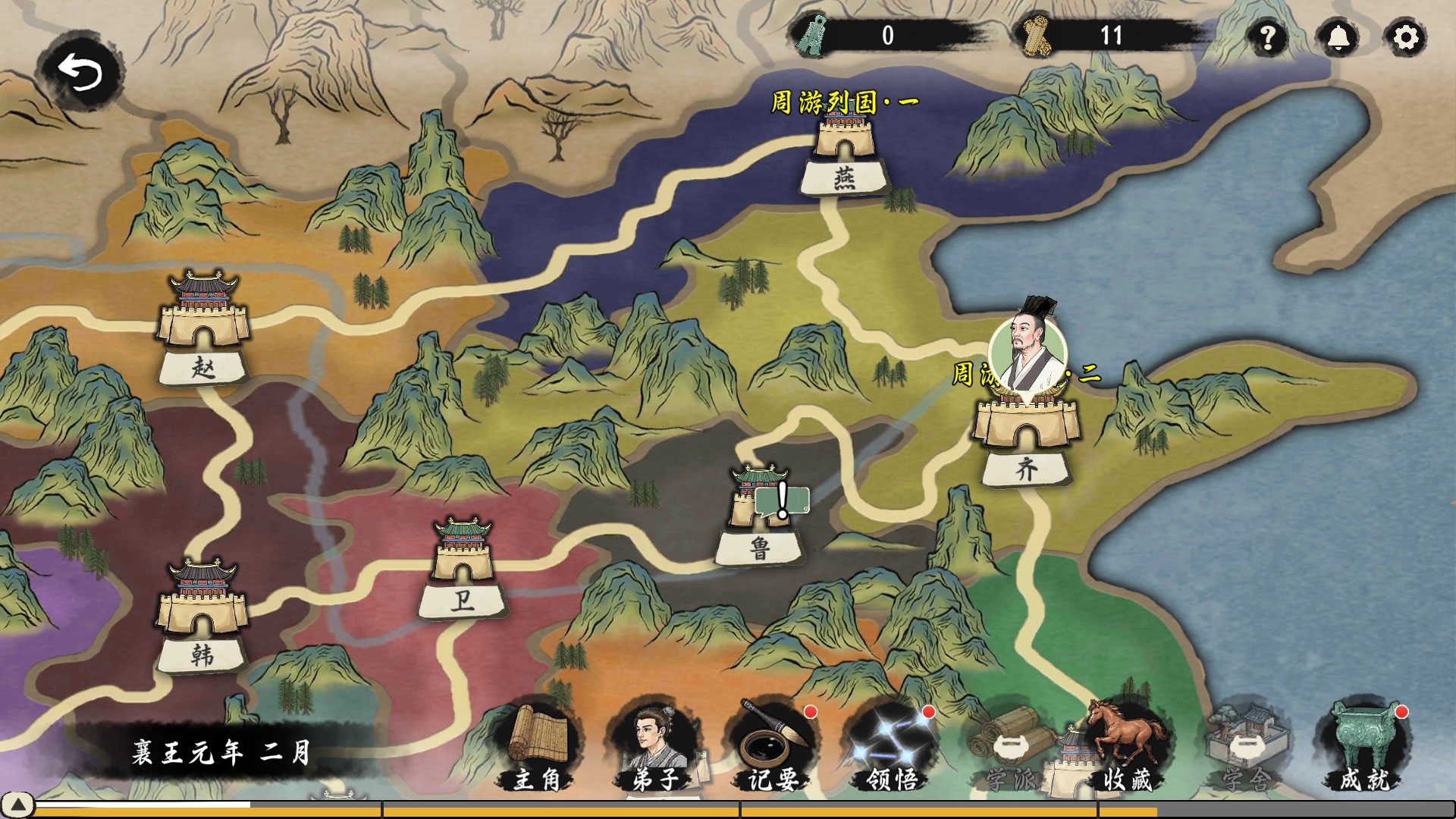 1、提供了儒家、墨家、道家、法家、阴阳家、农家等众多学派的思想,玩家可以根据自己的喜好和策略,自由选择吸收和融合,形成独特的学派风格。