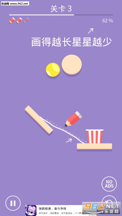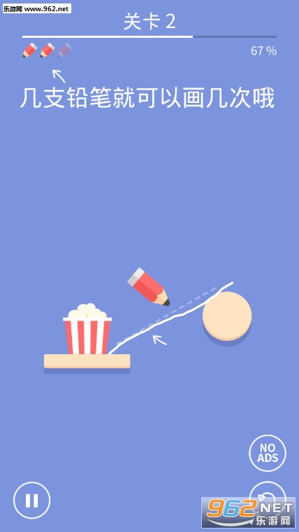 《爆米花画条线小游戏》是一款十分轻松好玩有趣的休闲益智类手机游戏,这款游戏的玩法非常的简单并且没有难度,玩家在游戏之中只需要用你的铅笔来画出一段段的线条来让球球能够通过线条来进入到爆米花桶之中就好!使用各种角度来画出线段让黄色球球进入到爆米花桶之中就能够得到新鲜美味的爆米花哦!非常简单的玩法,想要得到更多的爆米花的话就快来体验吧!