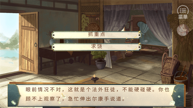 2. 点击右上角菜单”按钮,可随时存档、读取、回放剧情或调整设置,确保游戏体验流畅无忧。