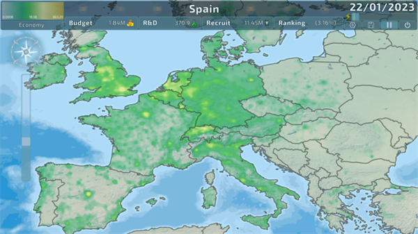 4、进入游戏如图,玩家需发展国家的经济,军事,科技实力;