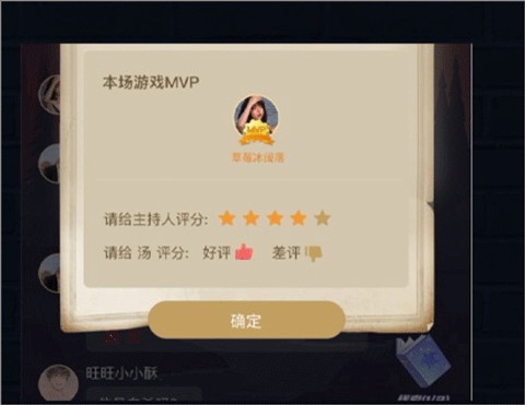 6、每局结束推理后,主持人会选择一位玩家为该场的MVP玩家,玩家会得到相应的奖励,也可以给主持人评分