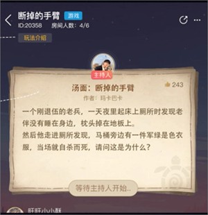 5、当有玩家正确推理出情景故事,主持人会结束该局游戏,发放汤底,玩家可以查看汤底进行复盘