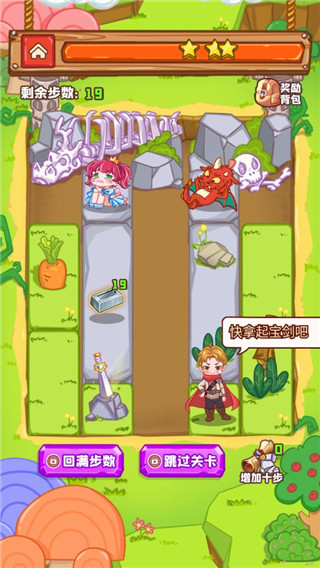 游戏采用独特的步数限制机制,玩家需在限定步数内拖动勇者地块,拾取宝剑,精准刺向恶龙完成击杀。每一步都至关重要,考验你的路径规划与时机判断。