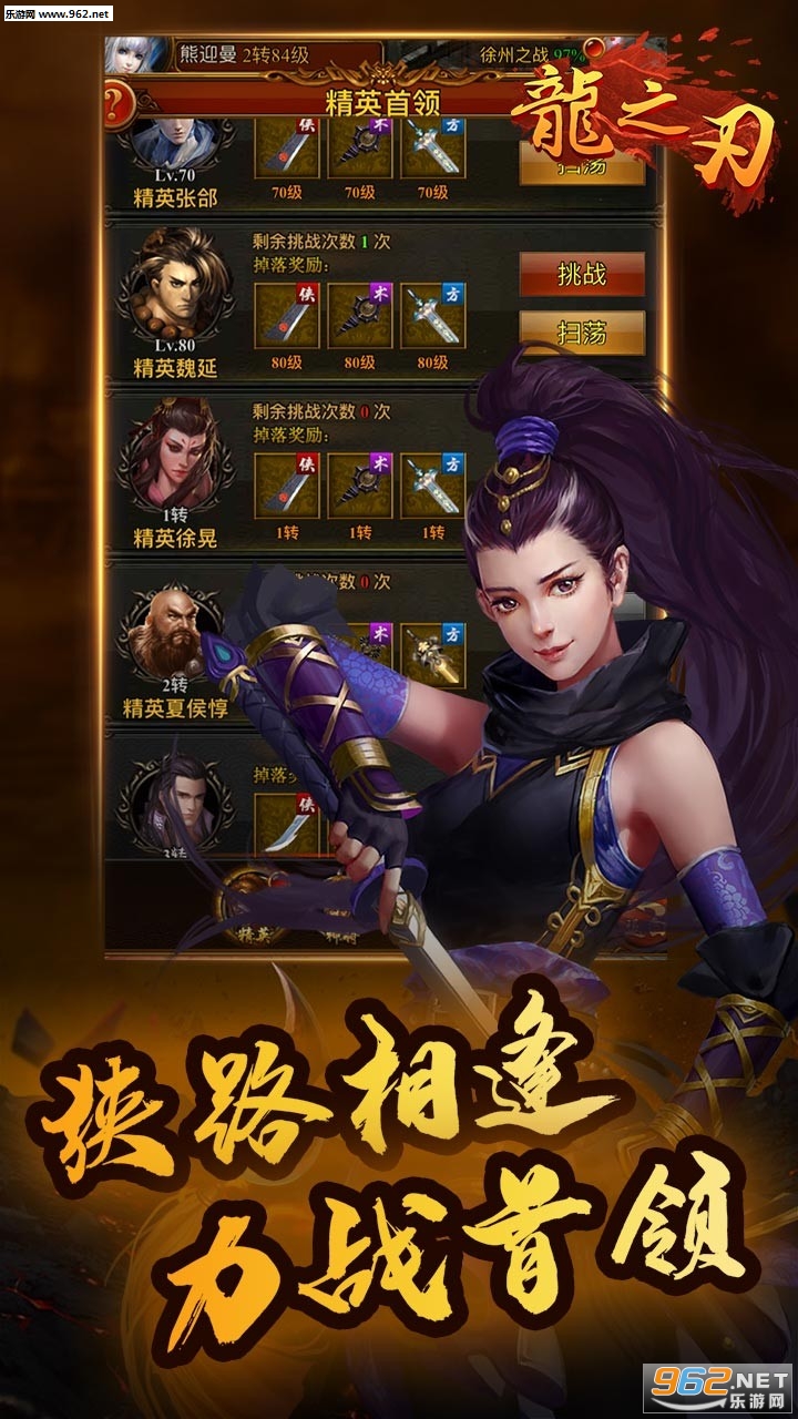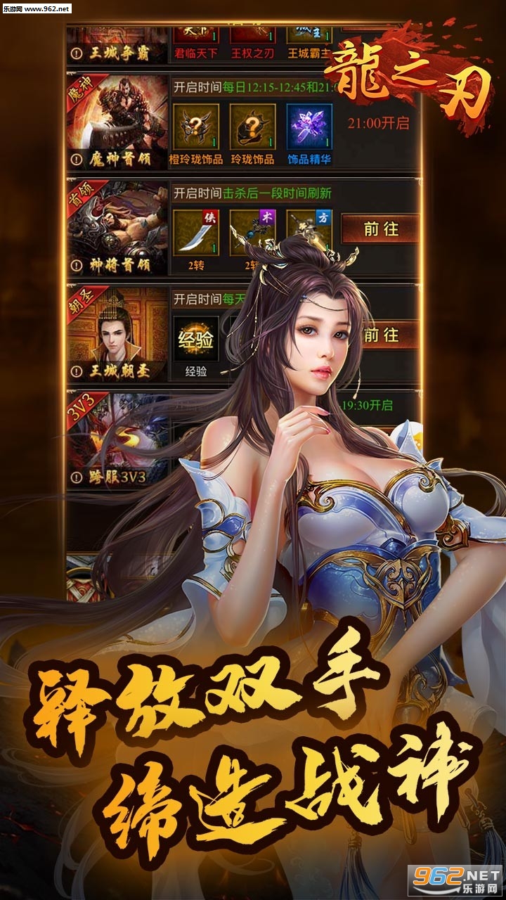 《龙之刃》是一款类传奇题材游戏,在游戏中你可以征战各种武将BOSS,培养属于自己的美人,还有激情四射的跨服比拼,你还在等什么,赶紧来体验吧!《龙之刃》,绝不让你失望。